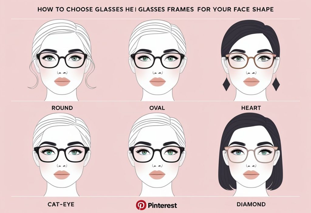 • Diamond Face: Oval and rimless glasses highlight cheekbones. Glasses Frames for Women