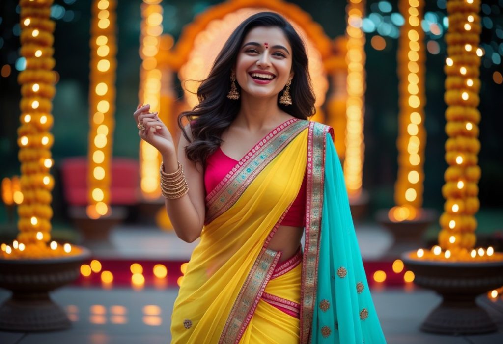 Festivals like Diwali, Eid, and Navratri are incomplete without a bright saree.