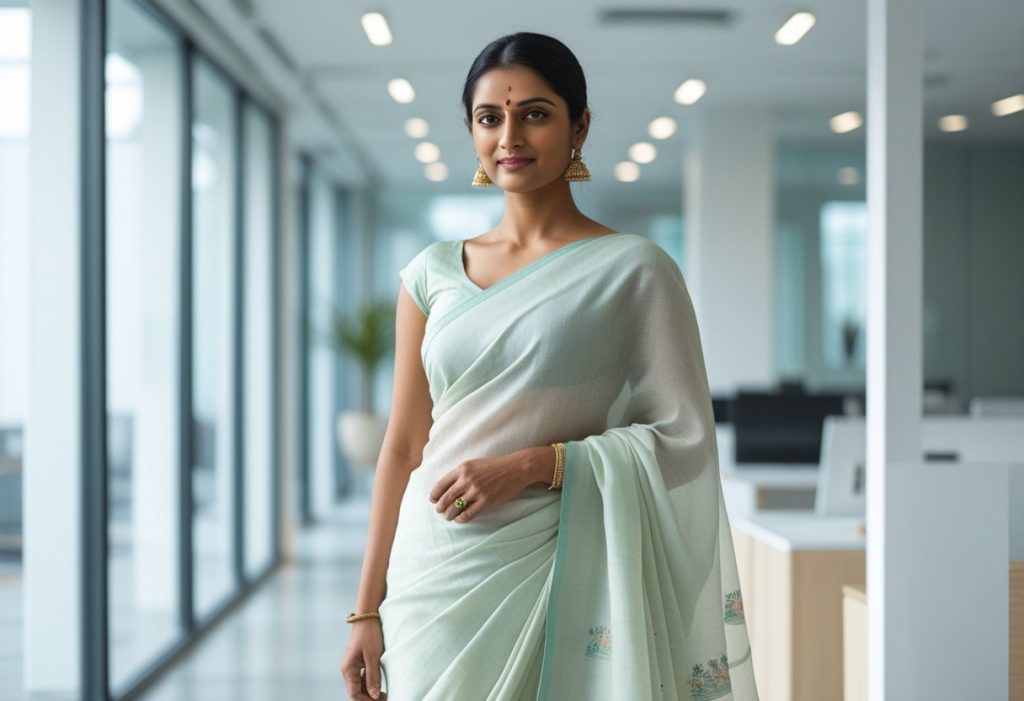 👉 Yes, cotton and linen sarees are perfect for office wear — elegant yet comfortable.