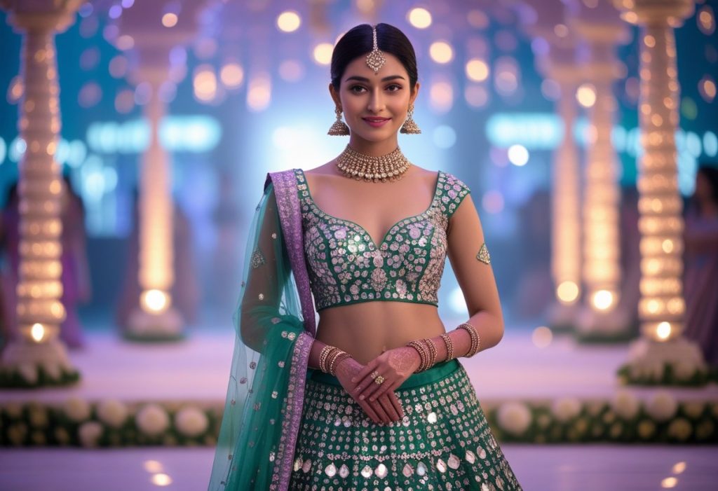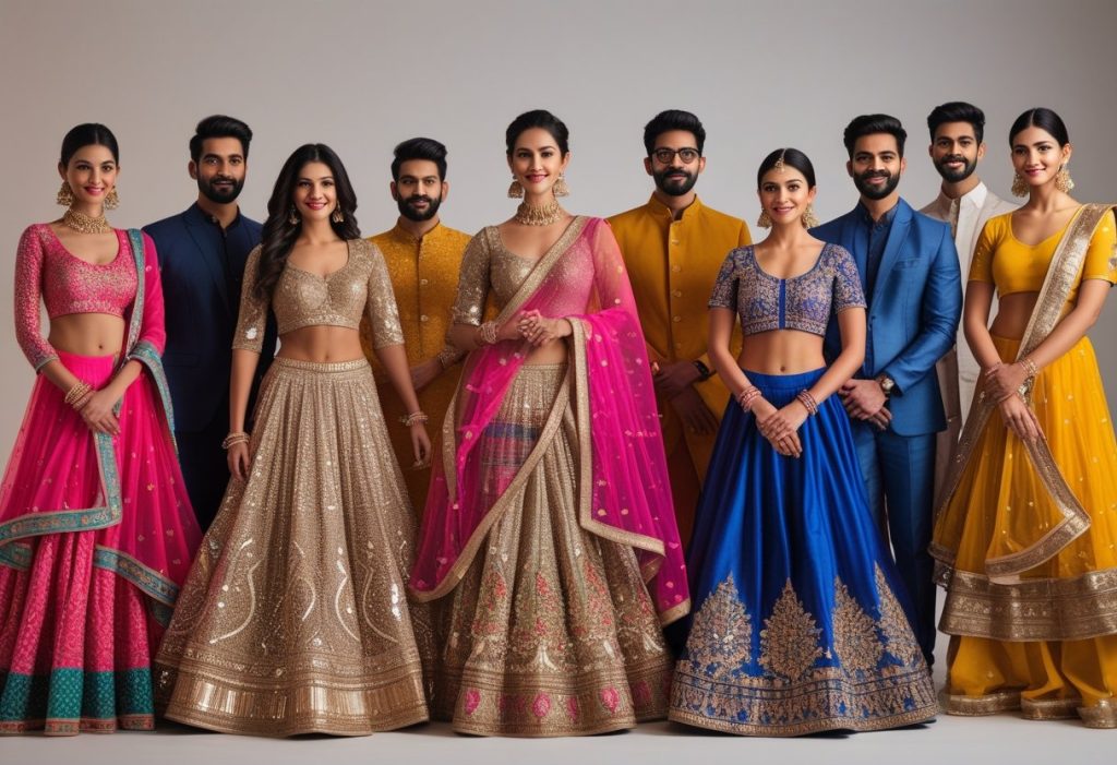 At OutfitAura.pro, we curate collections that bring festive energy alive. From mirror work lehengas to fusion Indo-Western styles, every piece is designed for style, comfort, and tradition.