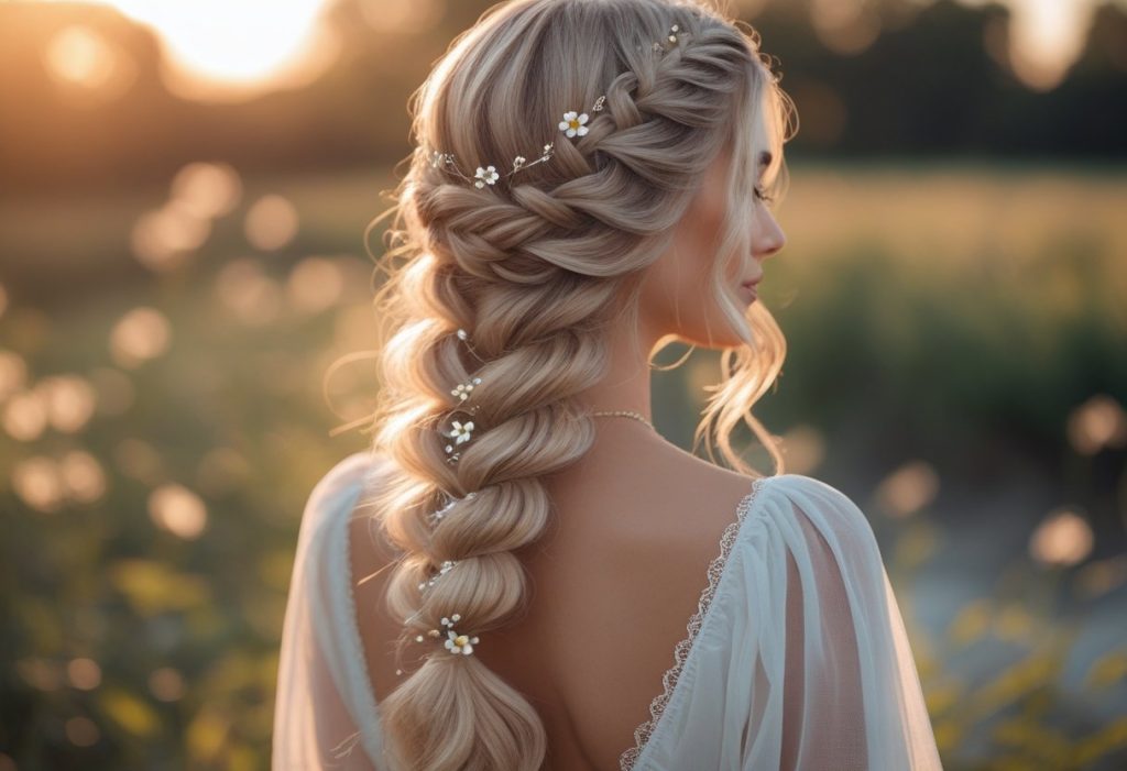 This semi-loose braid lets sections of hair fall, creating a “waterfall” effect — ideal for weddings and romantic occasions.