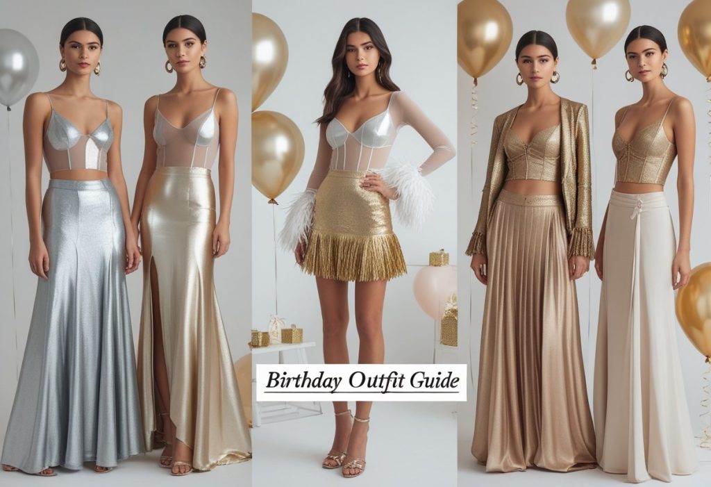 Silver, gold, and chrome are dominating the scene. A metallic slip dress or a pair of shimmering trousers instantly elevates your look from simple to spectacular. This trend is all about making a bold, futuristic statement. Birthday Outfit Guide