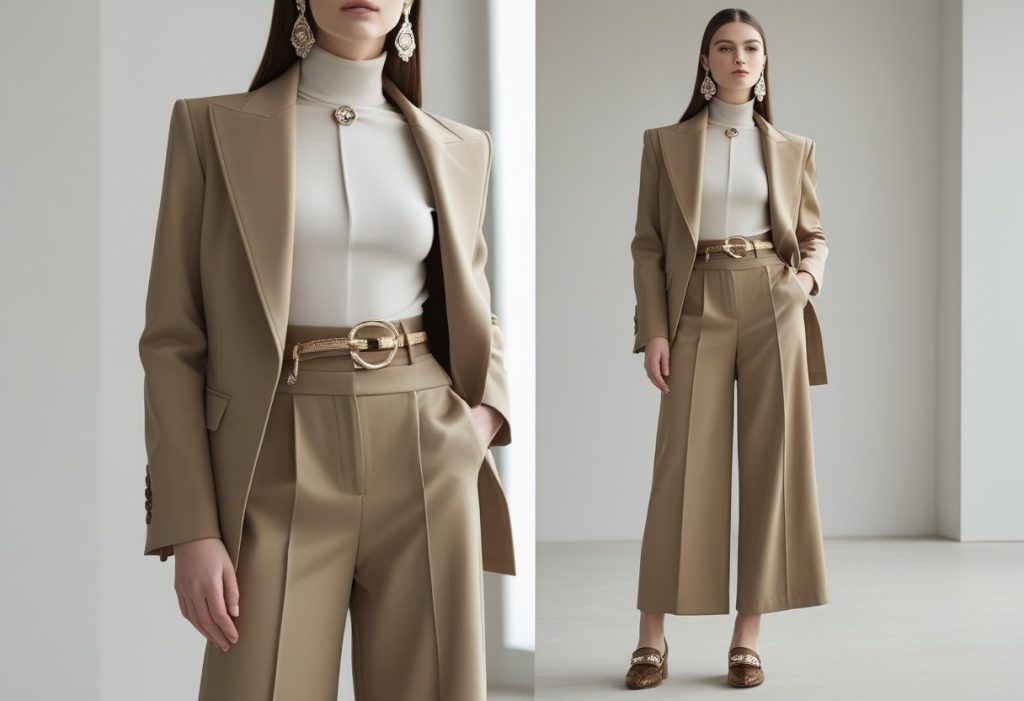 When styling a high collar jacket, consider balance as your guiding principle. Since the jacket draws attention to your upper body and neck area, pair it with bottoms that create proportional harmony. Wide-leg trousers or A-line skirts work beautifully with fitted high collar jackets, while slim-fit pants or pencil skirts complement more voluminous jacket styles.