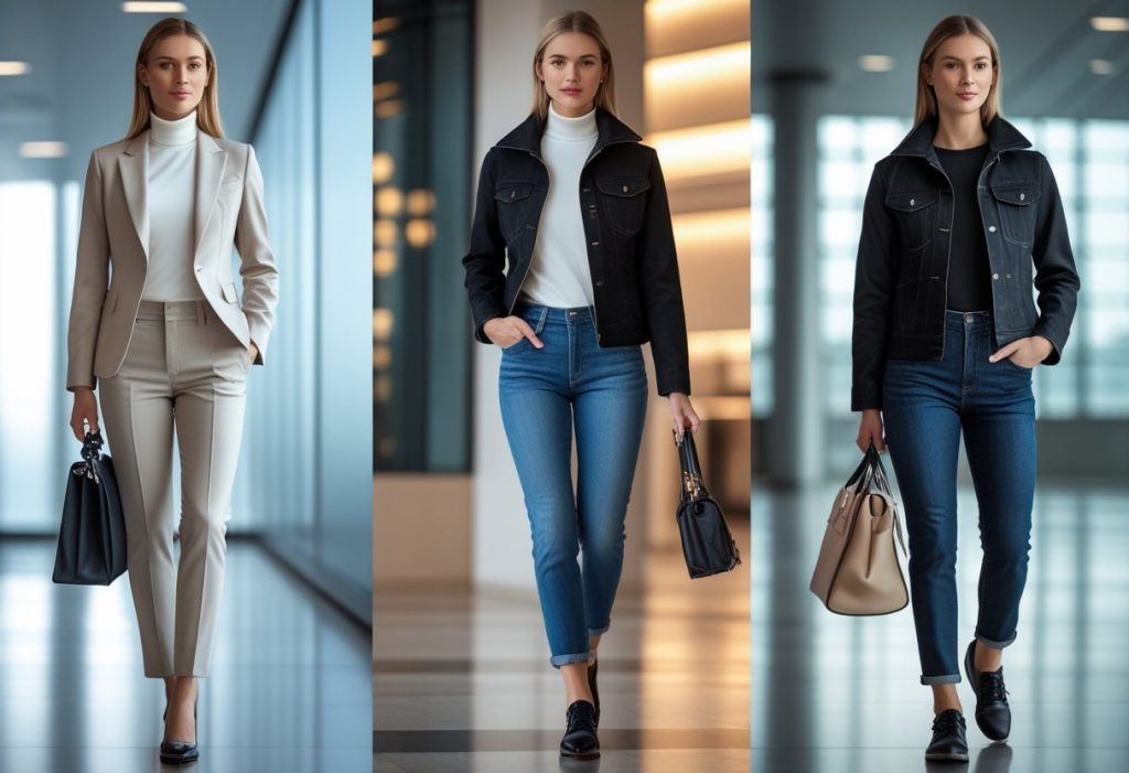 In corporate or professional settings, tailored high collar jackets in neutral colors convey sophistication and confidence. Pair with tailored trousers, modest heels or polished shoes, and minimal accessories for a powerful yet fashionable professional look. Consider the dress code of your specific workplace—some conservative environments may prefer traditional lapels, while creative industries often embrace fashion-forward interpretations.
