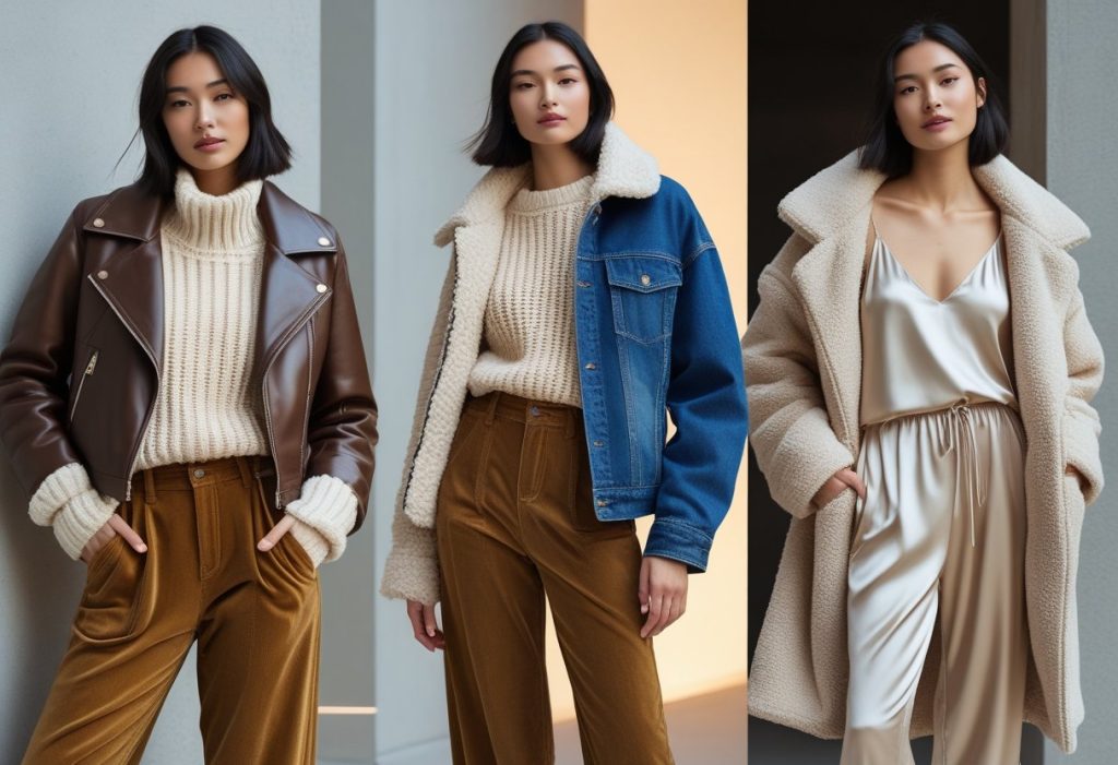 Casual winter outfits come alive through the deliberate pairing of contrasting textures. This season, try combining sleek materials like leather or satin with cozy, tactile fabrics such as chunky knits, faux fur, or corduroy.\