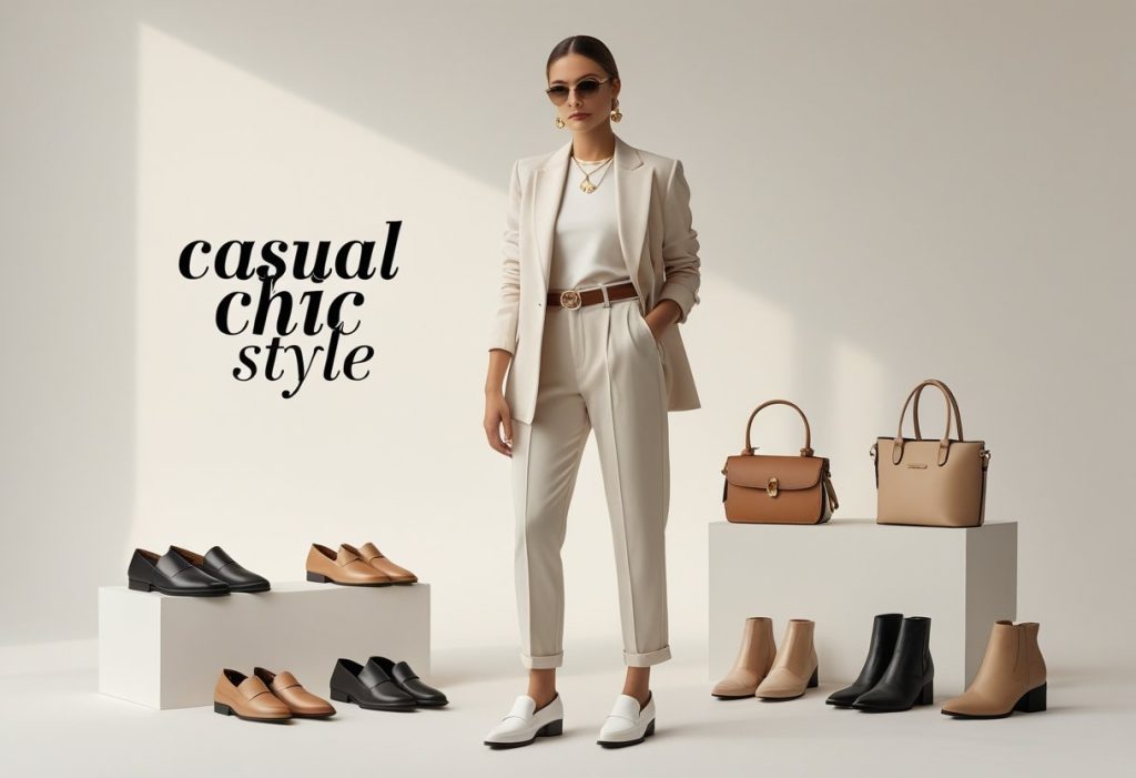 Elevating your outfit often comes down to the “third piece” rule—adding an element that transforms a simple combination into a complete ensemble. This could be a structured tote, a statement belt, a lightweight scarf, or layered jewelry. Footwear also plays a crucial role; classic white sneakers, sleek loafers, or minimalist ankle boots can maintain comfort while adding a touch of refinement. Remember, accessories should complement, not overwhelm. casual chic style